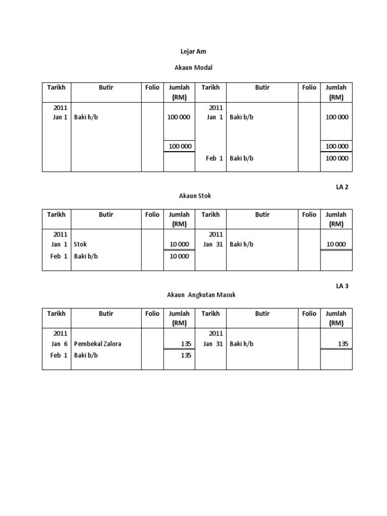 Mari kita lihat proses aliran entri sebelum dan sesudah direkodkan dalam jurnal umum. LEJAR KHAS Syarikat Auto Mobile Tarikh 2011 Jan 31 Baki hb Butir Folio Jumlah RM 30 000 30 000 Feb 1 Baki bb. Contoh dalam buku teks ms 153 155 ditunjukkan.